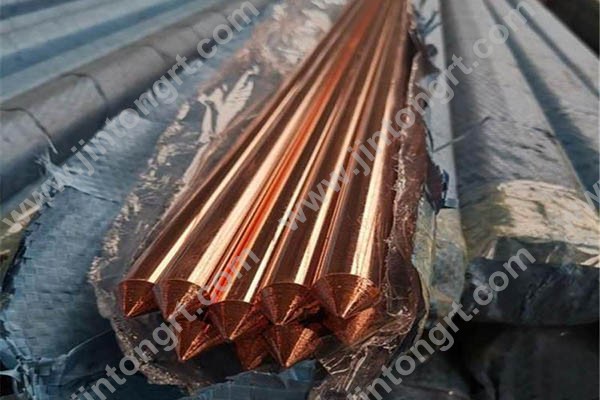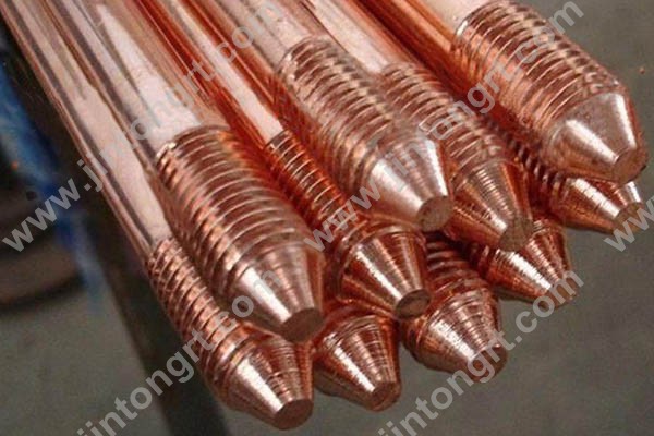 青島金通瑞泰科技有限公司生產的電鍍銅接地棒是采用將含量為99.9%的電解銅分子均勻覆蓋到低碳鋼芯上,是銅與鋼芯完全分子結合。它具有銅層厚(0.25毫米以上)、粘合度好、不剝離(可軋制螺紋)等特點。它的優點是抗拉強度大(高達600牛頓/平方毫米),耐腐蝕性強(可保證使用壽命在50年以上)。