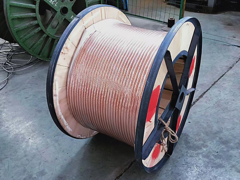 銅包鋼絞線由一定根數的銅包鋼單線絞制而成。是銅包著鋼絲,因此是鋼絲外圍包裹銅層的復合線材,它利用低壓高頻信號的趨膚效應,在高頻區沿表面行走,所以只要銅層厚度達到一定范圍,某個頻率段的信號就能被確保傳遞。銅起到傳導弱電信號的作用,鋼絲則起到支撐作用。依據銅包裹到鋼絲的不同方法,主要分為電鍍、包覆、熱鑄/浸以及電鑄。該產品既有鋼的強度和韌性,又有銅的良好導電性和耐腐蝕性能。相比銅單線具有密度小,強度高,造價低等優點,是傳統純銅單線的更新換代產品。